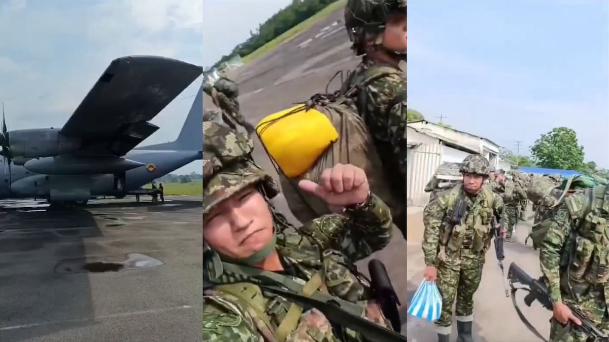 Entre ellos, un soldado oriundo de Magangué grabó un video minutos antes de abordar el Hércules C-130 de la FAC, en Puerto Leguízamo. En las imágenes puede observarse a varios soldados sobre la pista, listos con su equipaje, municiones, comida y enfilados para subirse a la aeronave.