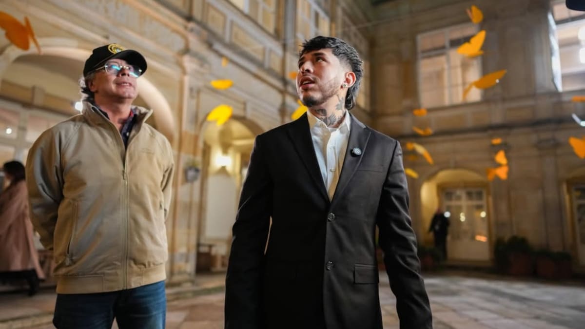 El streamer recibió por parte del presidente un paquete con una gorra blanca que decía: “Ni un peso atrás en el salario vital”. Además, de un sombrero vueltiao. En ese momento le preguntó si sabía bailar porro. Y WestCol le respondió: “No, no sé bailar. Sé hacer otras cosas con los porros, no bailarlos”.