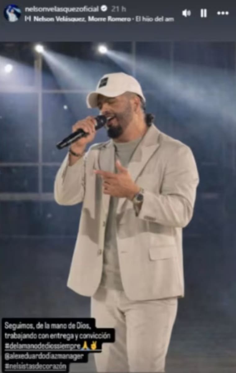 Por su parte, Nelson Velásquez reapareció este fin de semana en redes sociales tras varios días de la polémica. A través de sus ‘historias’ de Instagram compartió una foto suya cantando, acompañada de un mensaje: “Seguimos, de la mano de Dios, trabajando con entrega y convicción”.