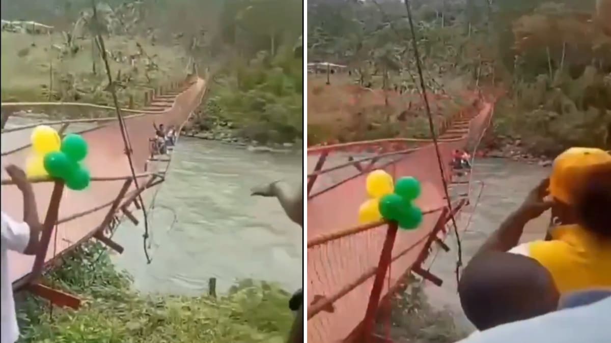 Asimismo, en videos grabados por asistentes se observa el momento en que se realiza el tradicional corte de cinta y, posteriormente, varios ciudadanos empiezan a transitar por el puente metálico de cerca de 60 metros de longitud. Instantes después, la escena cambia drásticamente.