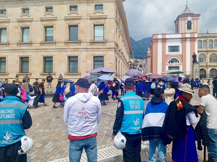 Además, los manifestantes, pertenecientes al resguardo de Guambía en Silvia (Cauca), se desplazaron por varias regiones del país en una caravana de 22 chivas. Su objetivo es abrir espacios de diálogo con el Gobierno y exigir garantías en materia de derechos humanos, protección frente a la violencia armada y avances en la reforma agraria.