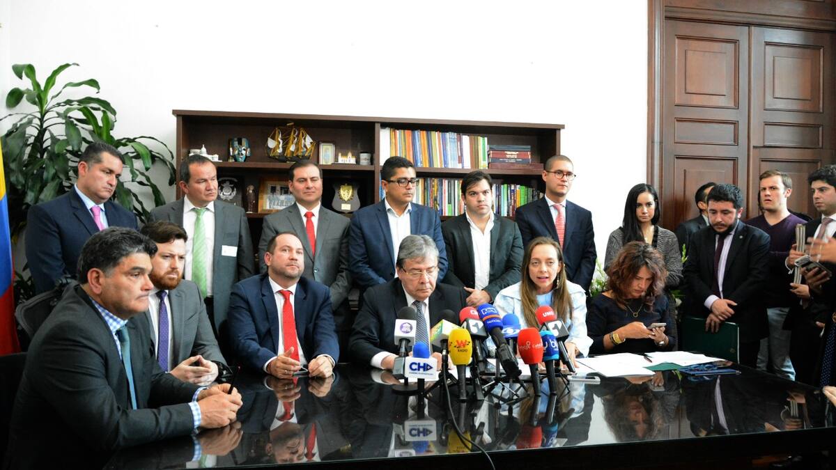 El canciller Carlos Holmes Trujillo, en compañía de varios congresistas de distintas vertientes, radicó este miércoles el proyecto de ley que establece la política migratoria del Estado colombiano.