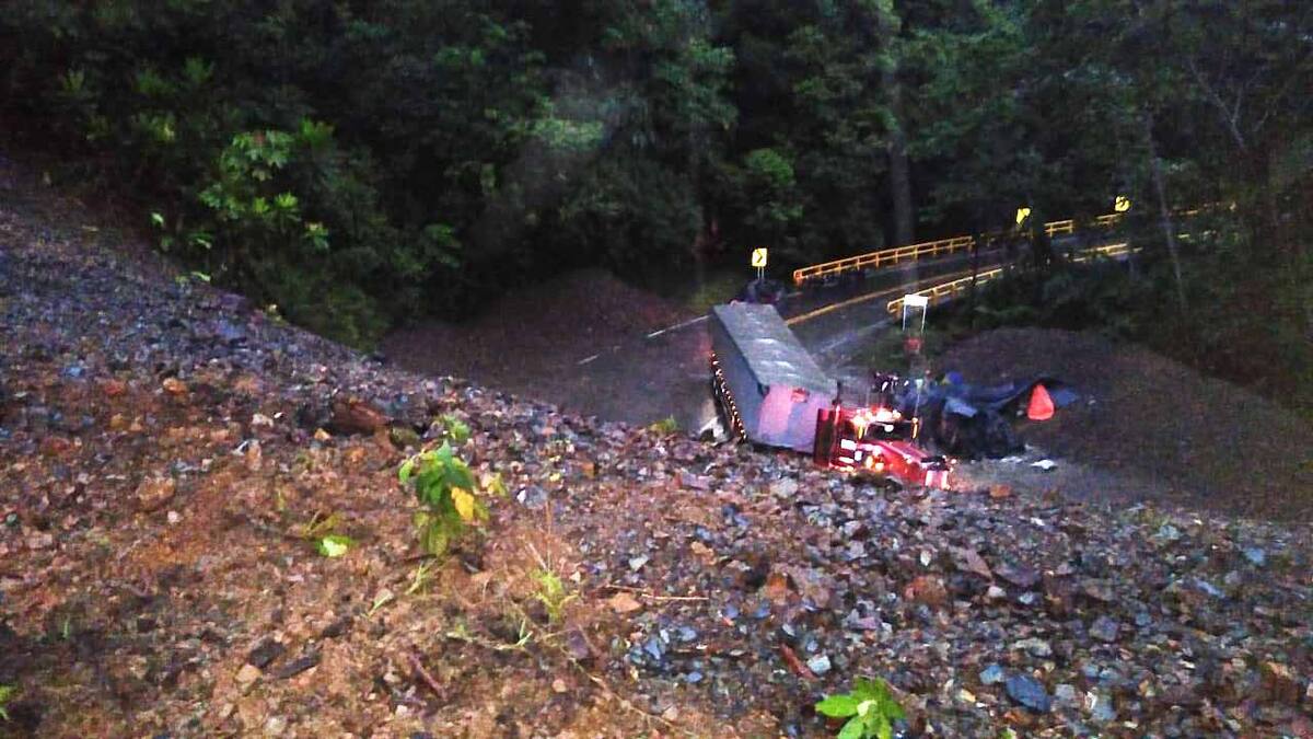 El derrumbe es producto de las lluvias y por ello hasta no estabilizar la montaña no se podrán iniciar con obras de remoción de la piedra y la tierra que taponó la vía.