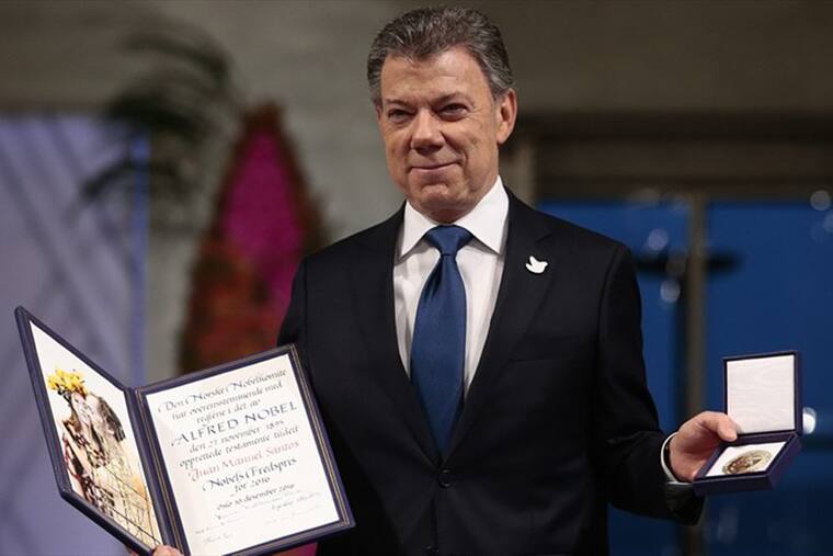 Casi dos meses después de ser notificado, el presidente colombiano se trasladó hasta Oslo, Noruega, para recibir, el 10 de diciembre, su galardón. 'Hay una guerra menos en el mundo, ¡y es la de Colombia!', fue una de las frases que lanzó el mandatario, durante el discurso que dio al recibir el Nobel.