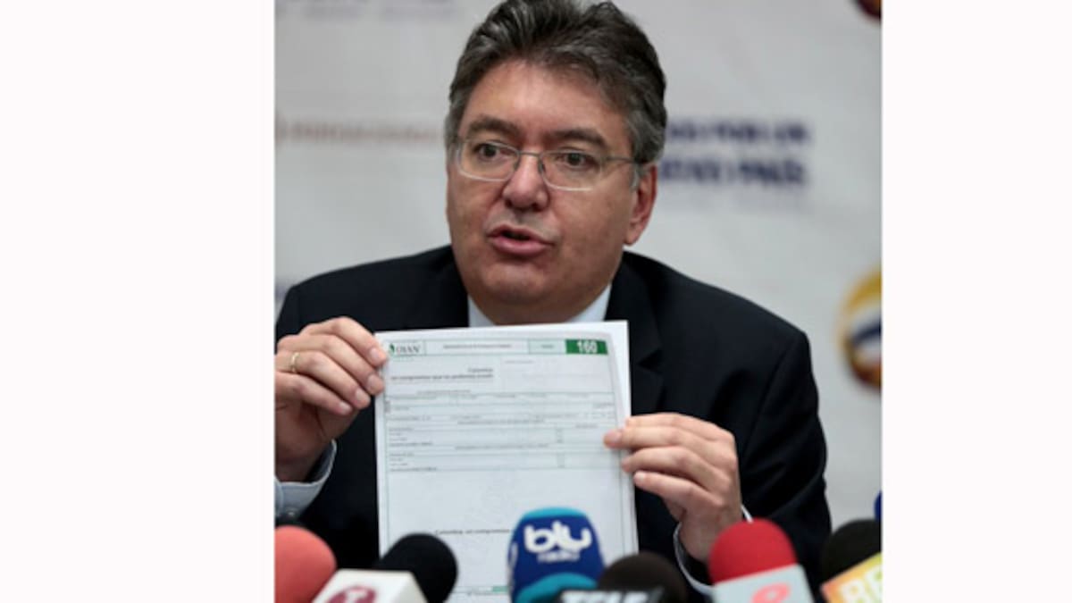 Durante la presentación del informe, el ministro de Hacienda, Mauricio Cárdenas, entregó el formulario que deben diligenciar los colombianos para reportar sus inversiones en el exterior.