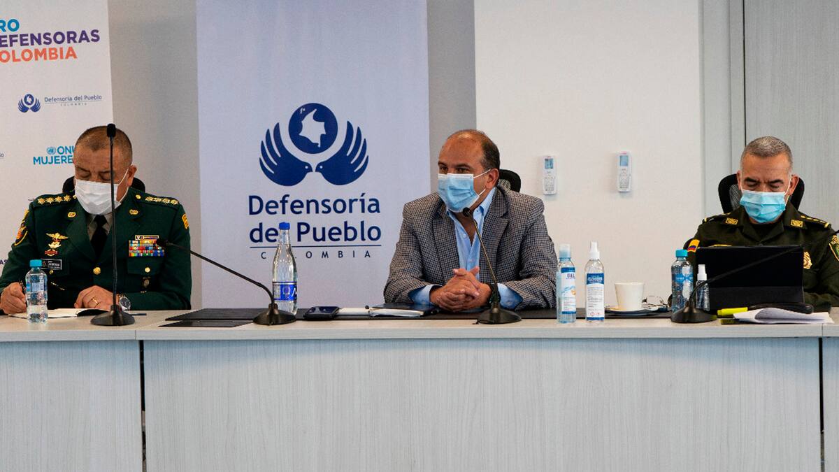 El defensor del pueblo, Carlos Camargo Assis, se reunió este viernes con los altos mandos militares y de policía para evaluar los protocolos de acompañamiento de la fuerza pública de las manifestaciones públicas, en cumplimiento del fallo de tutela de la Corte Suprema de Justicia.