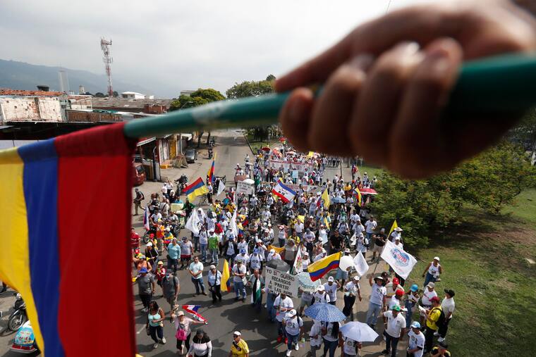 Miles de trabajadores salieron este miércoles a las calles de las principales ciudades del país. Manifestantes en Cali.