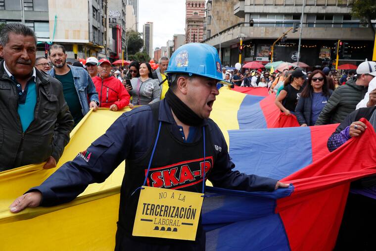 Carlos Ortega/EFEUn sinnúmero de ciudadanos sostienen la bandera de Colombia en plena calle de Bogotá. Miles de trabajadores salieron este miércoles a las calles de las principales ciudades del país.