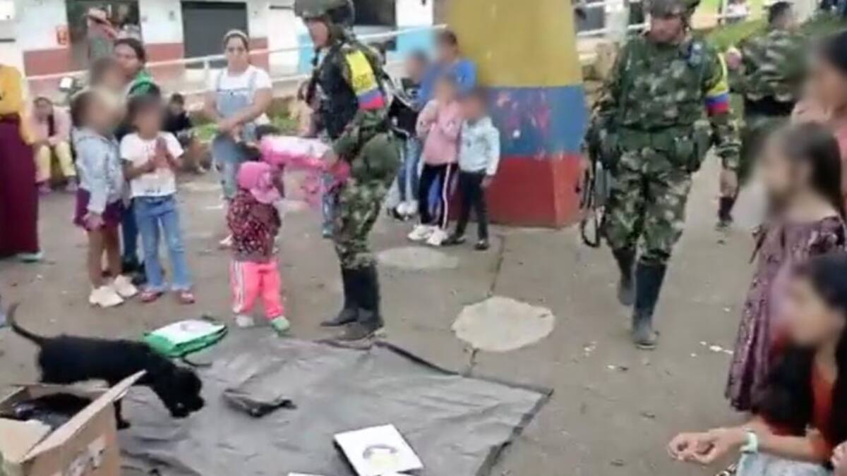 'Este kit se los mandó la guerrilla de las Farc como una donación para ustedes', comenta un hombre que quedó grabado mientras entregaba diferentes objetos a los menores.