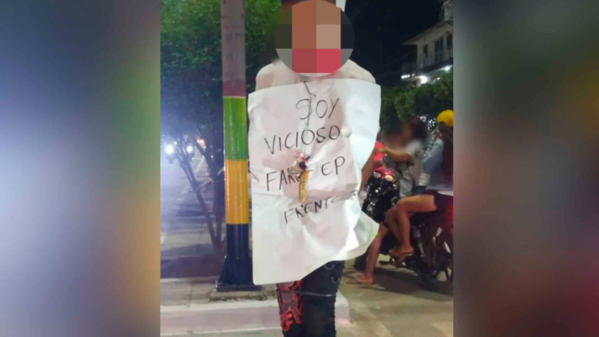 Atemorizados. Así se encuentran los habitantes de Tibú, Norte de Santander, por las acciones recientes de las disidencias de las Farc. Amarraron a un poste y colgaron un cartel al pecho de un joven al que acusan de consumir drogas en esa zona del país.