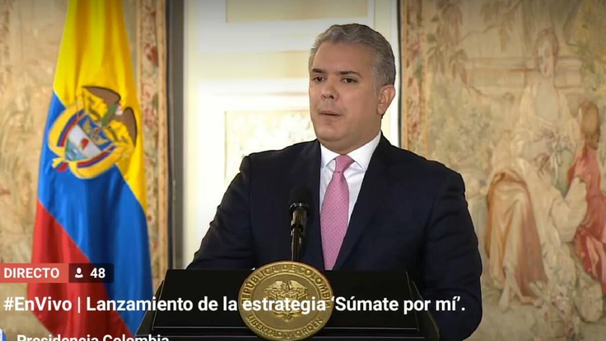 El presidente Iván Duque presentó este miércoles en la Casa de Nariño la estrategia 'Súmate por mí', para la prevención del reclutamiento, uso, utilización y violencia sexual contra niños, niñas y adolescentes para territorios en alto riesgo.