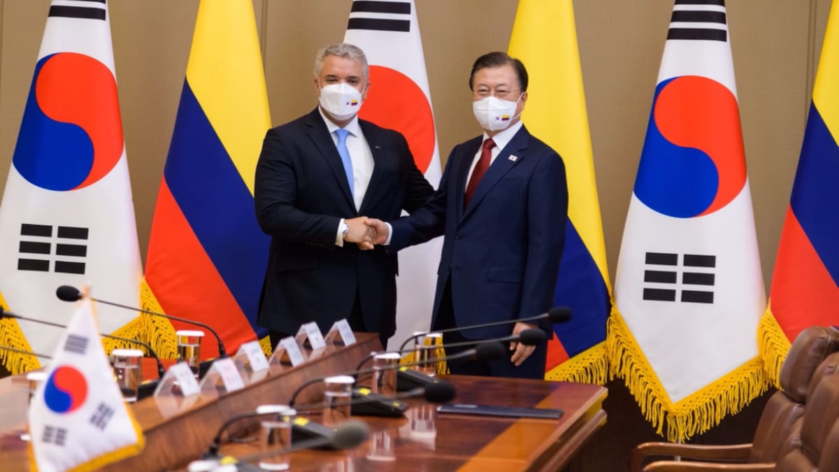 Se trata del punto central de la visita de Estado que realiza el mandatario a la nación asiática. El jefe de Estado colombiano llegó a las 10:00 horas del miércoles (20:00 del martes, hora colombiana) a la Casa Azul, residencia oficial del gobernante surcoreano, en compañía de la primera dama, María Juliana Ruiz. Allí fueron recibidos por el presidente Moon y su esposa, Kim Jung-sook.