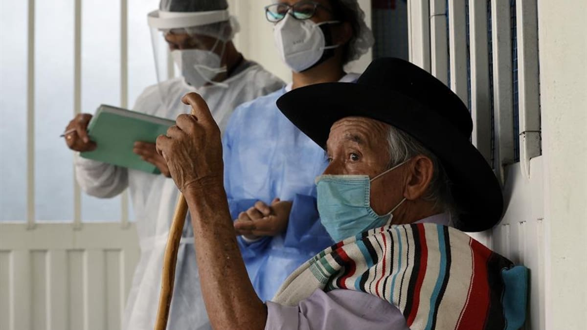 Don Pedro Huerta, que a sus 89 años sale de la consulta con la flamante vacuna, apoyado en un bastón y con el morral al hombro, también viene de una vereda situada a dos horas, de una finca donde cultiva yuca, plátano, maíz y café.