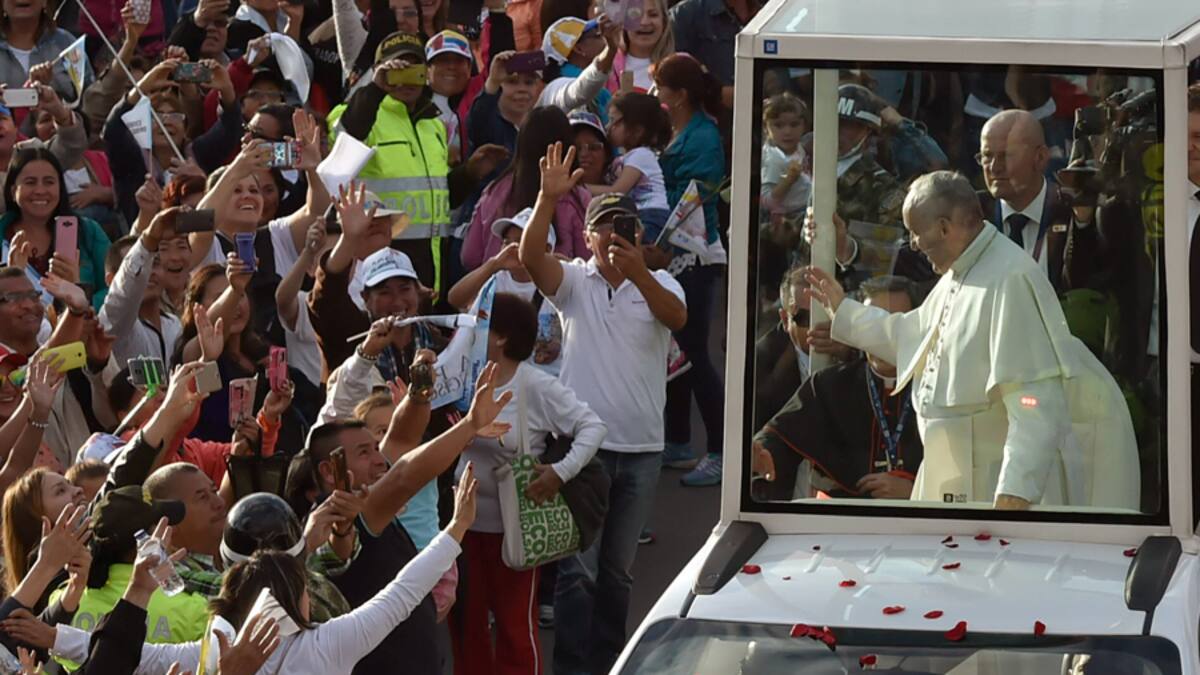 Tras el saludo de bienvenida de las autoridades, el Pontífice abordó el papamóvil y emprendió el recorrido por las calles que lo llevarían a la Nunciatura Apostólica, ubicada en el sector de Teusaquillo, en la capital del país. Miles de personas salieron a las calles a darle la bienvenida a Colombia, el séptimo país con más católicos en el mundo.