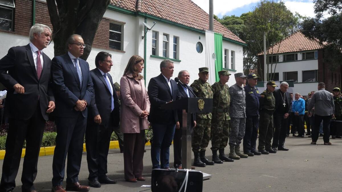 Pidió el jefe de Estado, en medio de su declaración al término de un consejo de seguridad en la Escuela General Santander, un minuto de silencio por las víctimas: 'Colombia unida contra el terrorismo, solidaridad con las víctimas, quiero que hagamos un minuto de silencio en toda Colombia en su memoria'.