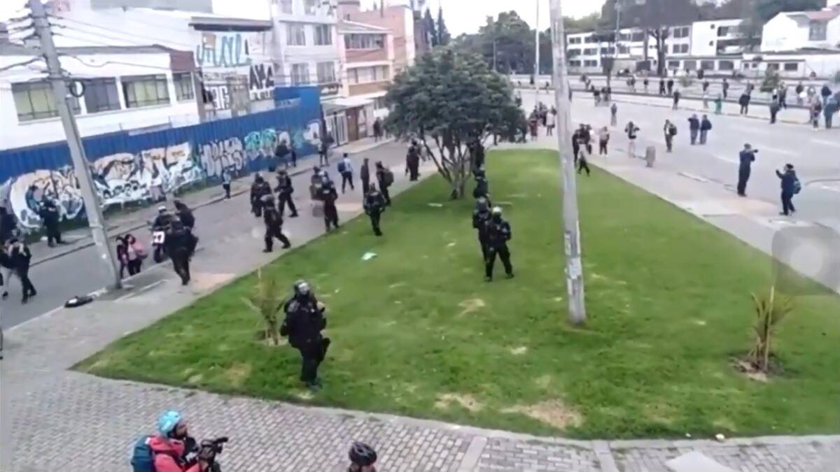 Miembros del Esmad se enfrentaron la tarde de este martes a encapuchados en inmediaciones de la Universidad Nacional, en la carrera 30 con calle 45 en Bogotá.
