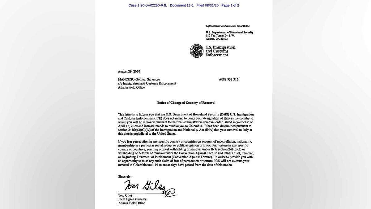 Le fue entregada al propio Salvatore Mancuso, cuya firma aparece en el documento, el 29 de agosto de 2020.