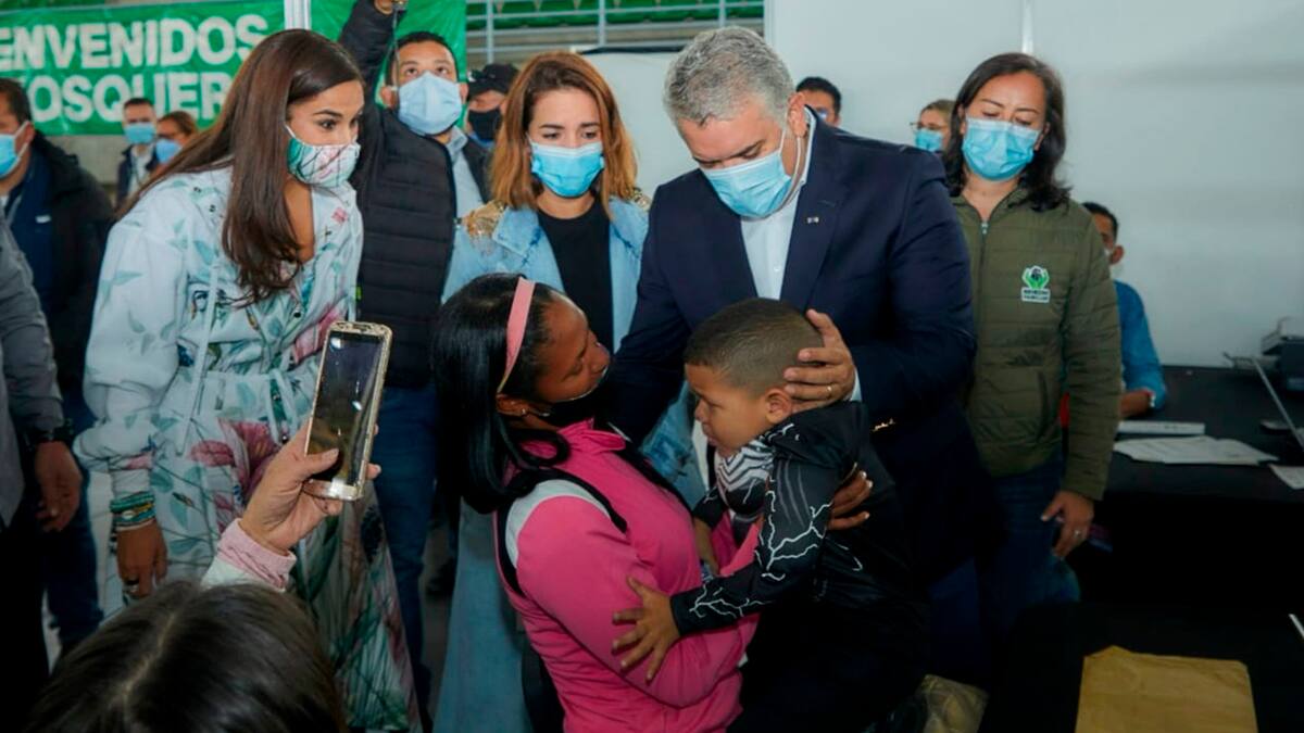El presidente de la Republica Iván Duque Márquez, asiste este sábado a la población de Mosquera (Cundinamarca), con el fin de participar en la jornada de entrega de permisos de protección temporal a menores de edad, pertenecientes a población migrante de nacionalidad venezolana.