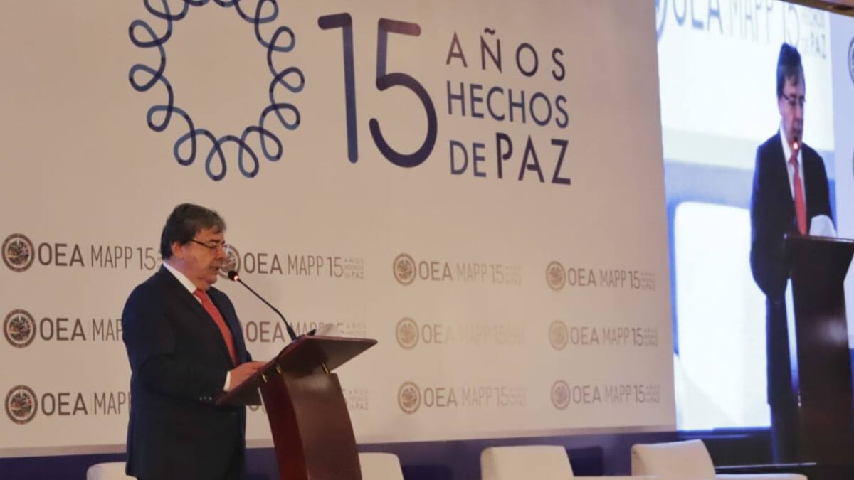 En la antesala de la 49 Asamblea General de la OEA, que se inicia este miércoles en Medellín, el canciller Carlos Holmes Trujillo y el secretario general de la OEA, Luis Almagro, participaron en el evento de conmemoración de los 15 años de la presencia de la Misión de Apoyo al Proceso de Paz de la OEA en Colombia.