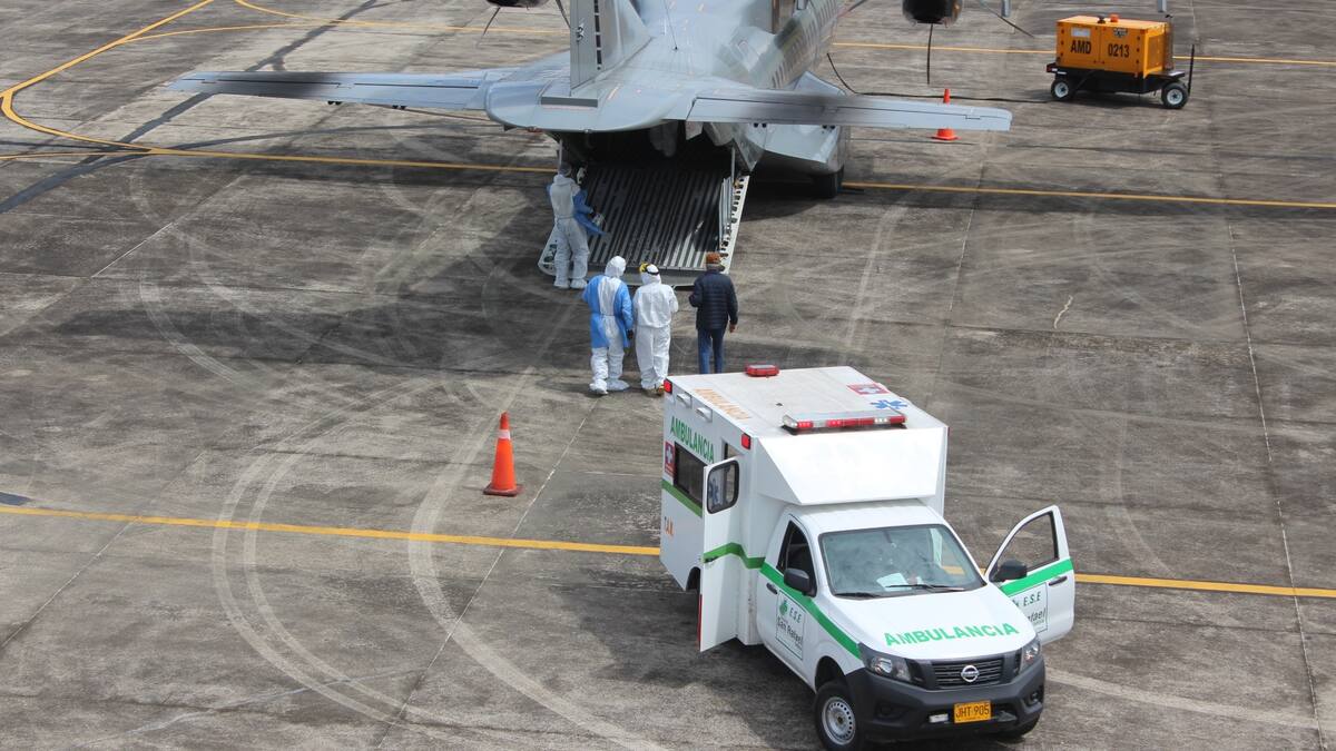 La Fuerza Aérea Colombiana realizó este domingo el traslado de siete pacientes con COVID-19 desde Leticia, en Amazonas, hasta la ciudad de Bogotá. Para este vuelo la institución tuvo que adecuar uno de sus aviones, un Casa-295, para cumplir con todos los protocolos de bioseguridad y asistencia médica requerida para estos casos.