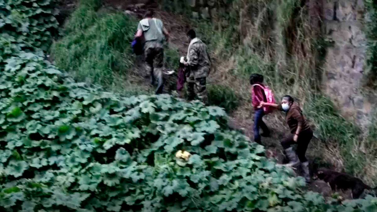 Un perro las acompaña por la mañana en medio del abismo cual guardián moral y según avanzan se divisa el río fluir a varias decenas de metros de sus pies, donde han perdido la vida en los últimos años decenas de migrantes, en su mayoría venezolanos.