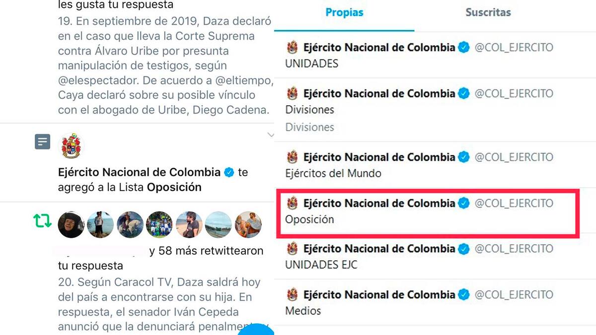 Ante las críticas, el ente castrense dijo que había sido un error llamar al listado de 'oposición' y afirmó que era una lista 'de monitoreo' de Twitter y que fue 'creada como una herramienta en la red social para el monitoreo de las menciones o etiquetas de la cuenta sobre temas relacionados con el Ejército Nacional, cualquiera que estos sean'.