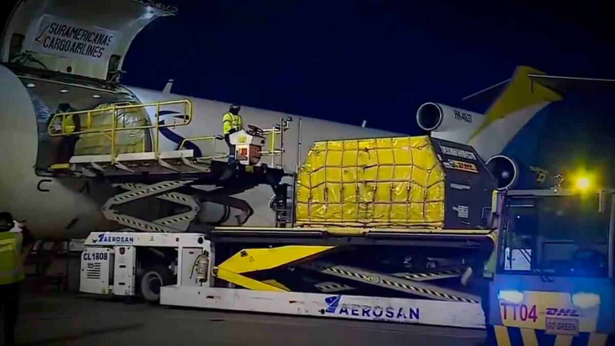 El envío de los biológicos, a cargo de la compañía DHL y transportado en un avión de Líneas Aéreas Suramericanas (LAS), partió de Bruselas e hizo escala en Miami y Panamá, antes de su arribo a la capital del país.