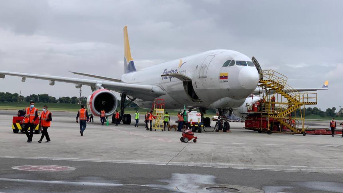 El Gobierno informó en un comunicado que las dosis llegaron a las 8:31 a.m. al aeropuerto El Dorado, de Bogotá, en una aeronave Airbus 330 de Avianca Cargo.