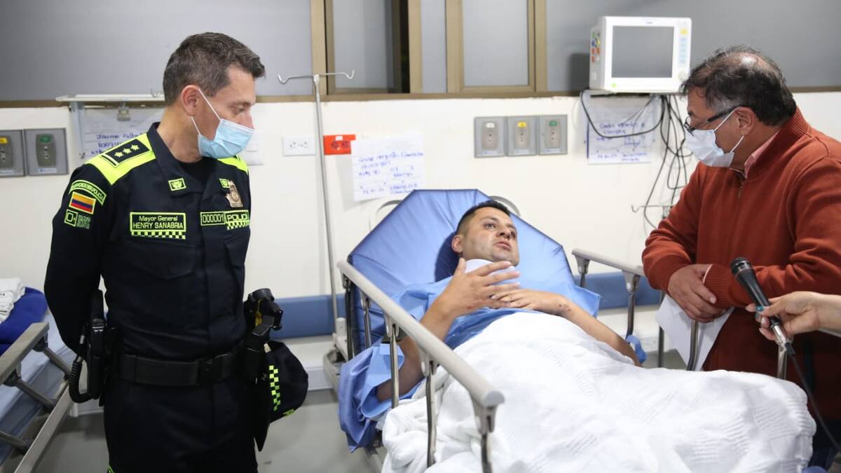 Luego de que 11 uniformados de la Policía resultaran heridos en medio de una protesta de indígenas embera en el centro de la capital del país, el presidente Gustavo Petro y el ministro de Defensa, Iván Velásquez, los visitaron en el Hospital de la Policía.