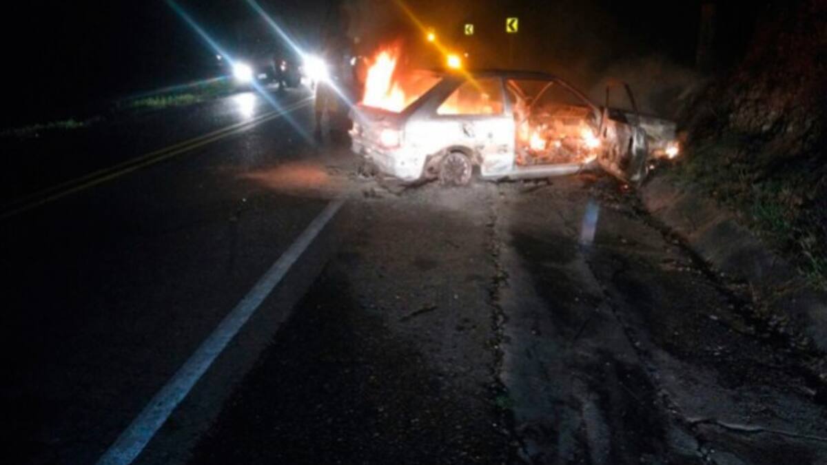 El hecho ocurrió este viernes cuando un vehículo Mazda 323, que era conducido por el padre de los menores, se salió de la vía y se incendió.