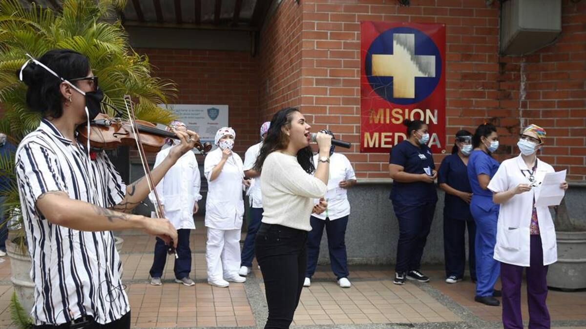 Para apelar al poder curativo de la música y apoyar al personal sanitario en la lucha contra la COVID-19, un grupo de artistas llevó este jueves a hospitales de Medellín un mensaje de ánimo y esperanza con pequeños conciertos organizados bajo la iniciativa '#MúsicaPorLaVida'.