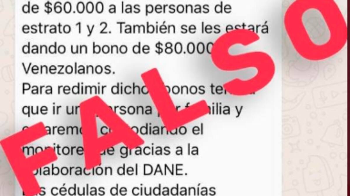Según la cadena falsa esta ayuda ha sido anunciada por la Cámara de Comercio y la entrega de los dineros se harán por medio del 'pico y cédula' y se estará monitoreando el proceso por el DANE, información que es totalmente falsa.