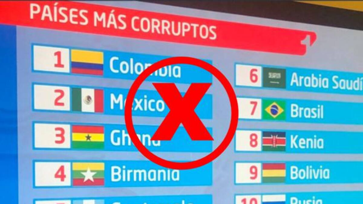 Se viralizó en Twitter un pantallazo de un ranking de 'Países más corruptos' en el que Colombia ocupa el primer puesto. La foto, en la que solo se ve el crédito del noticiero CM& como fuente, ha sido compartida por personajes con muchos seguidores como Gustavo Petro, Martín de Francisco y Daniel Samper Ospina, entre otros.