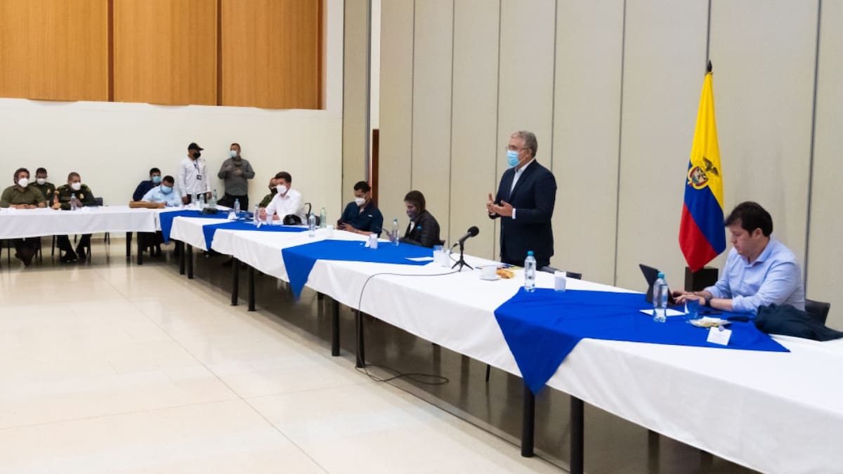 'La protesta social pacífica se entiende como un derecho constitucional que debe ser protegido, pero los colombianos debemos rechazar la violencia venga de donde venga. Vimos el compromiso de la institución militar y policial para apoyar las investigaciones sobre las conductas de la fuerza pública contrarias a la ley, pero también por hechos de violencia contra servidores de la patria', señaló el jefe de Estado a periodistas.