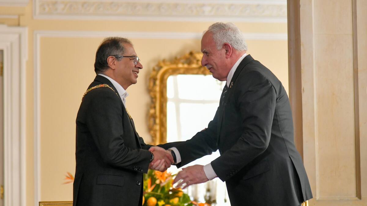 El presidente Gustavo Petro recibió una condecoración por parte del asesor de asuntos internacionales de Palestina, Riad Malki, en agradecimiento por su apoyo a este territorio de cara al conflicto con Israel.