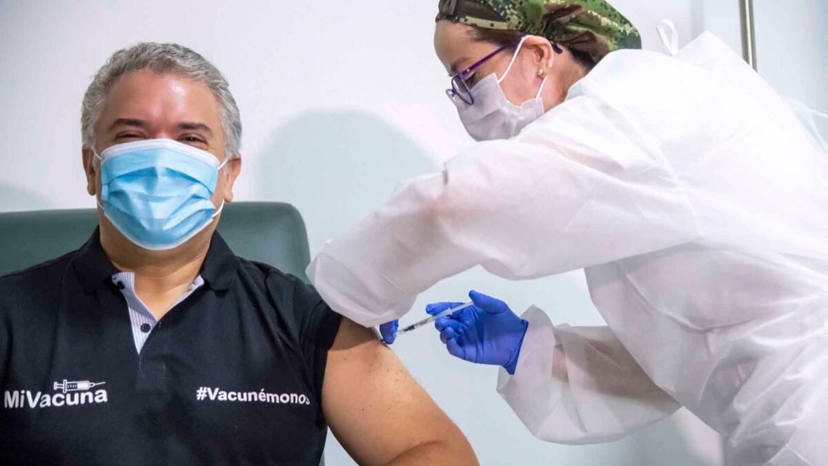 Este domingo, a las 10 de la mañana, el presidente Iván Duque recibió la primera dosis de la vacuna contra la covid-19, del laboratorio Pfizer, en el Hospital Militar Central.