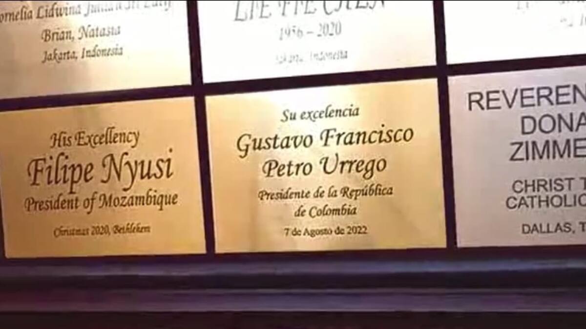 La placa de Gustavo Petro se encuentra junto a la placa conmemorativa del Papa Francisco, como un gesto de fe y fraternidad.
