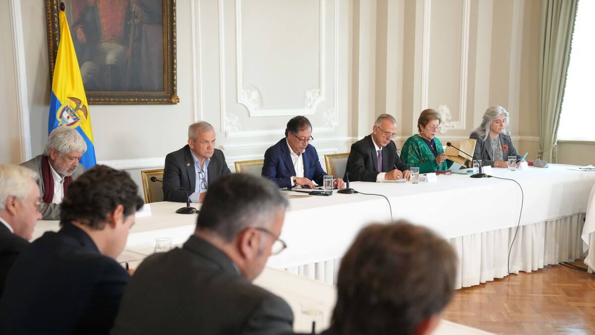 El Gobierno informó sobre la reunión en un comunicado que el Acuerdo Nacional focalizado en el Plan Nacional de Desarrollo, transición energética y cómo avanzar en el enfoque de derechos para los colombianos, fueron los temas planteados en la reunión que lideró el presidente con el Consejo Gremial Nacional en la Casa de Nariño.