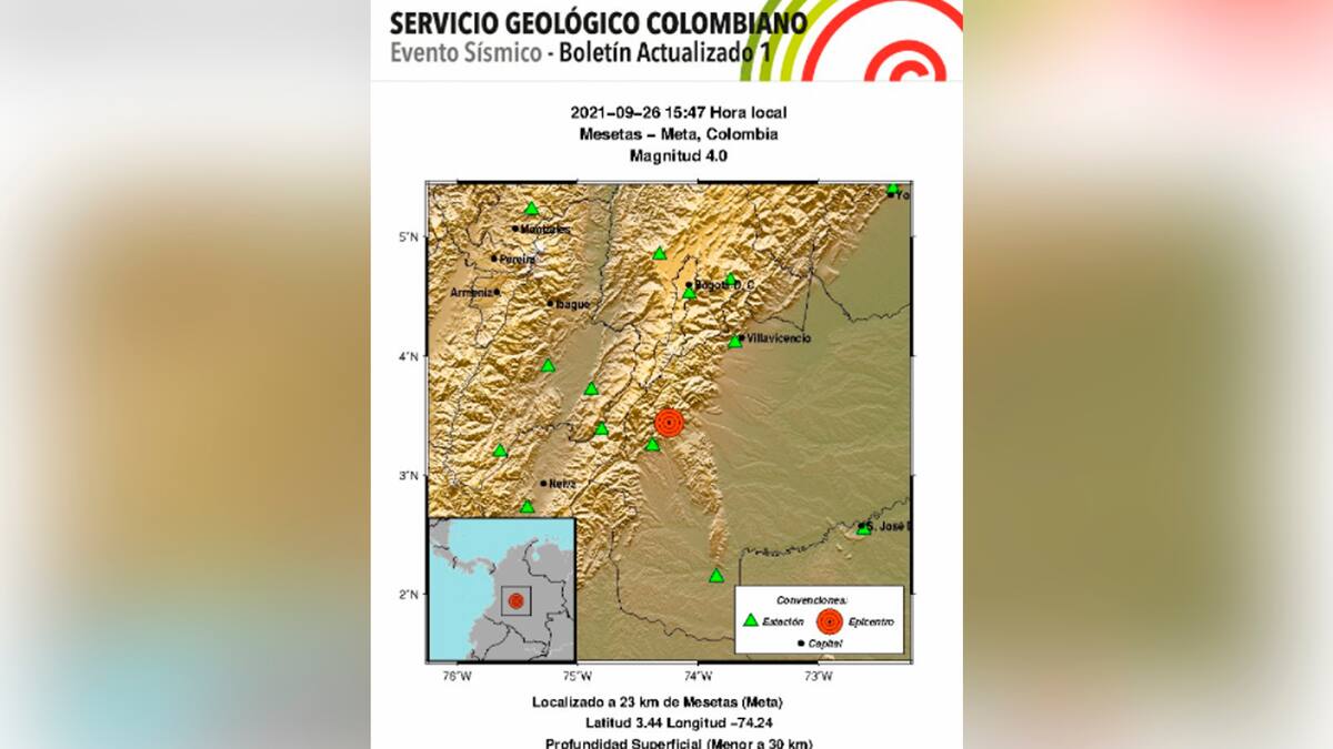 En el informe entregado por el Servicio Geológico, el sismo tuvo como epicentro el municipio de Mesetas, Meta.