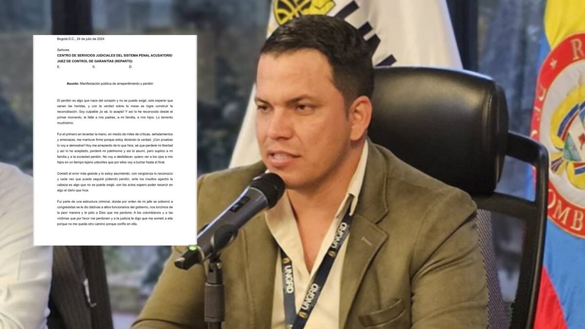 A un día de que se lleve a cabo la audiencia de imputación de cargos y medida de aseguramiento en contra de los principales involucrados en el escándalo de corrupción en la Ungrd, entre ellos el exsubdirector Sneyder Pinilla, este envió una carta de arrepentimiento dirigida a jueces de Paloquemao.