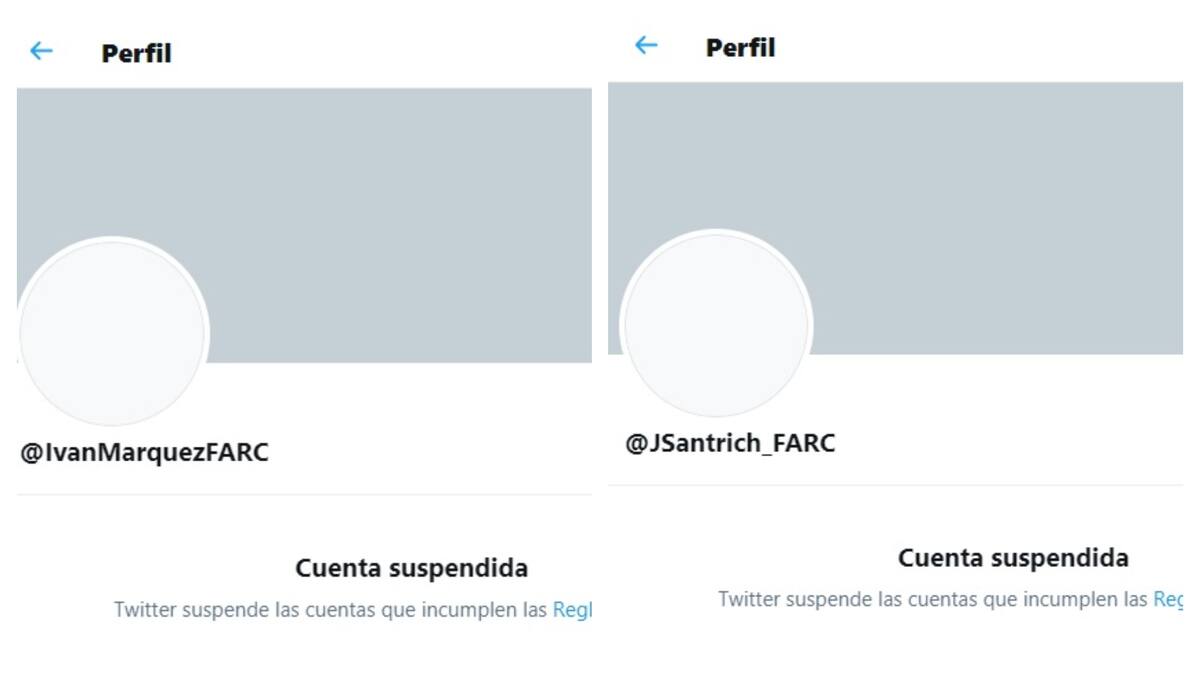 Las plataformas Twitter y YouTube suspendieron este viernes las cuentas por las que Iván Márquez, disidente de las Farc, difundió el video con críticas y posibles amenazas al Gobierno de Iván Duque. Las razones son por infringir las normas de estas plataformas digitales e 'incitar al terrorismo'.
