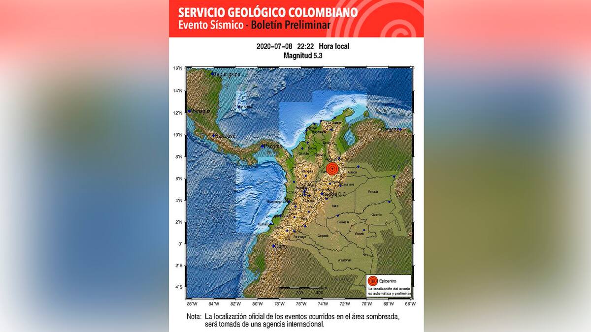 Hacia las 10:22 de la noche de este miércoles el Servicio Geológico Colombiano informó de un temblor en el centro del país con magnitud de 5.5, en la escala de Richter y el epícentro estuvo en el municipio de Zapatoca, departamento de Santander, con profundidad de 149 kilómetros.