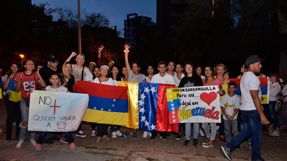 Quienes hicieron parte de las manifestaciones mostraban carteles de rechazo contra Maduro, levantaron pequeñas banderas de Venezuela, que ubicaron al revés, y entonaron el himno nacional del vecino país y utilizando velas encendidas en el caso de Barranquilla.