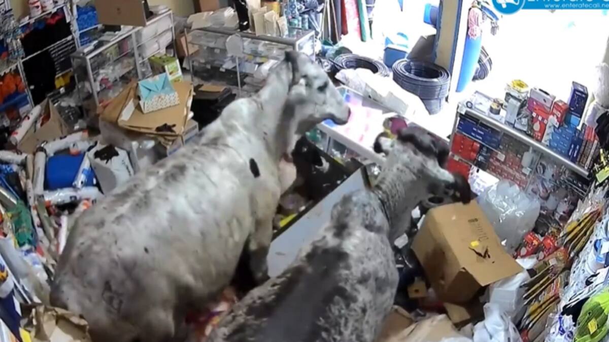 Durante varios minutos las vacas causaron un verdadero caos, pues se pasearon entre los estantes, derribando productos y destrozando vitrinas a su paso.