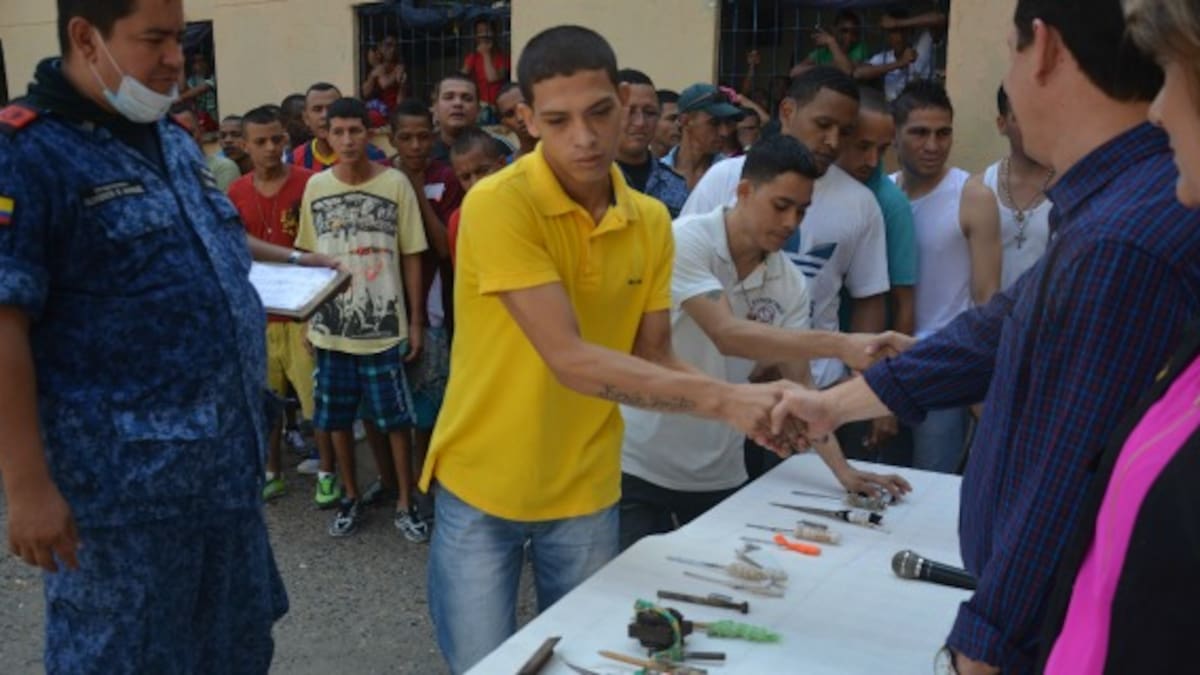 A las 10 de la mañana de este viernes, los internos de los pasillos 1, 2, 3, 4, 5, 6 y 7 del pabellón B de la Cárcel Modelo de Barranquilla entregaron sus armas como un gesto de paz y mejor convivencia entre ellos mismos.