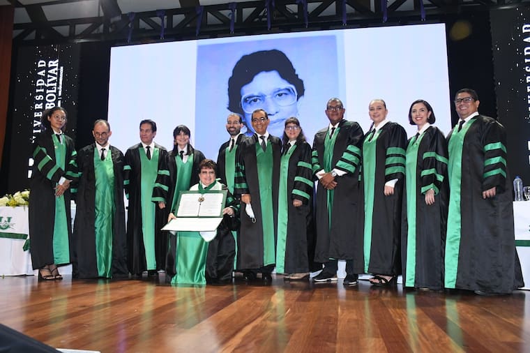 “Hoy valoramos el pasado y gozamos de su presente, le agradecemos su insoldable valor por la educación y su compromiso total con esta que ella califica como su hija”, aseguró José Consuegra Bolívar, rector de la Universidad Simón Bolívar, previo a la entrega del Doctorado Honoris Causa en Ciencias de la Educación a la presidenta de la Sala General de la institución.