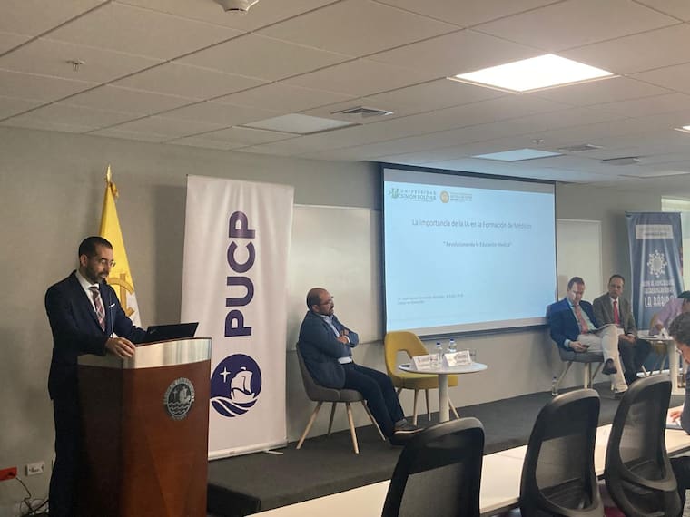 A la par de oportunidades, la IA representa además desafíos y limitaciones que deben ser considerados, incluyendo la privacidad y seguridad de los datos, el sesgo, la discriminación y la dependencia de la tecnología. “Es importante que los educadores médicos, los desarrolladores de IA y los reguladores trabajen juntos para abordar estos desafíos y garantizar que la IA se utilice de manera responsable y efectiva en la formación de médicos”, puntualizó Consuegra Machado, que integra la delegación de Unisimón en Lima (Perú) con el rector José Consuegra Bolívar y la directora de Internacionalización y Cooperación, Romina Molina García.
