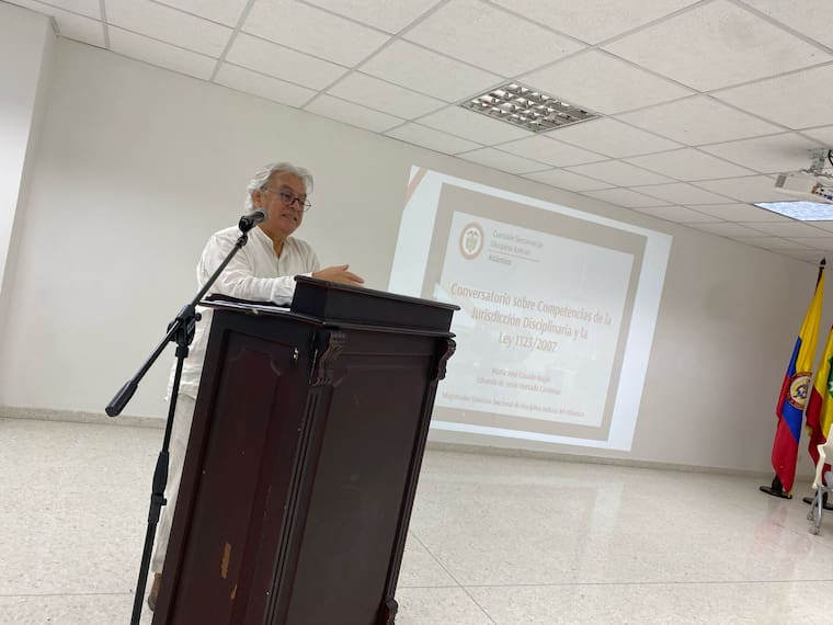 El panel de expertos estuvo conformado por la Dra. María José Casado Brajín, presidente de dicha comisión, quien expuso los aspectos clave de la Ley 1123 de 2007, que regula el Código Disciplinario del Abogado, y el Dr. Eduardo de Jesús Hurtado Cárdenas, magistrado de la misma comisión, quien profundizó en las competencias de la jurisdicción disciplinaria y su papel fundamental en la preservación de la ética profesional.