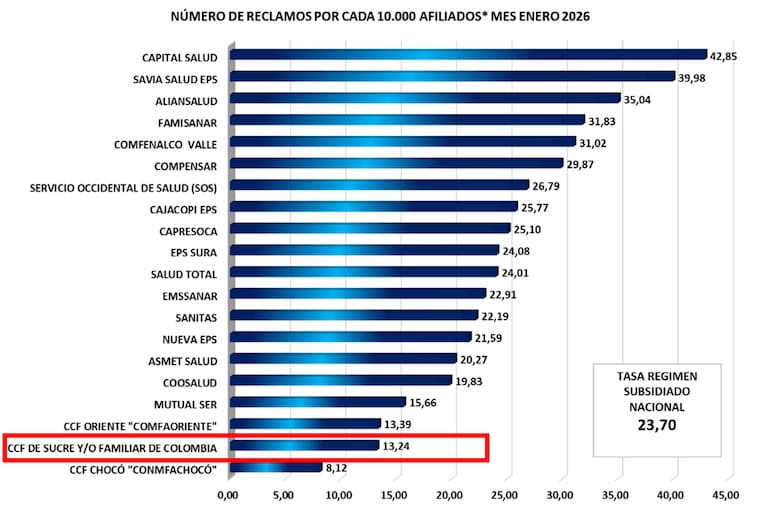 Esta estadística se puede consultar públicamente a través de Analisalud, una herramienta de análisis creada por la entidad de control que permite evaluar el comportamiento de los reclamos en el sistema de salud colombiano.