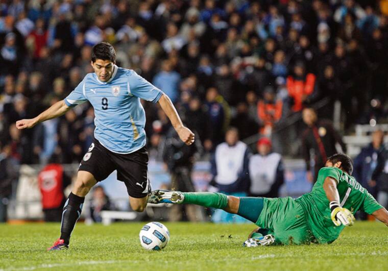 Uruguay fue lo de siempre: mucha rudeza defensiva, dos volantes de contención atentos a los movimientos rivales, otros dos por afuera dispuestos a sorprender, y Diego Forlán y Suárez entrando y saliendo de la jugada.